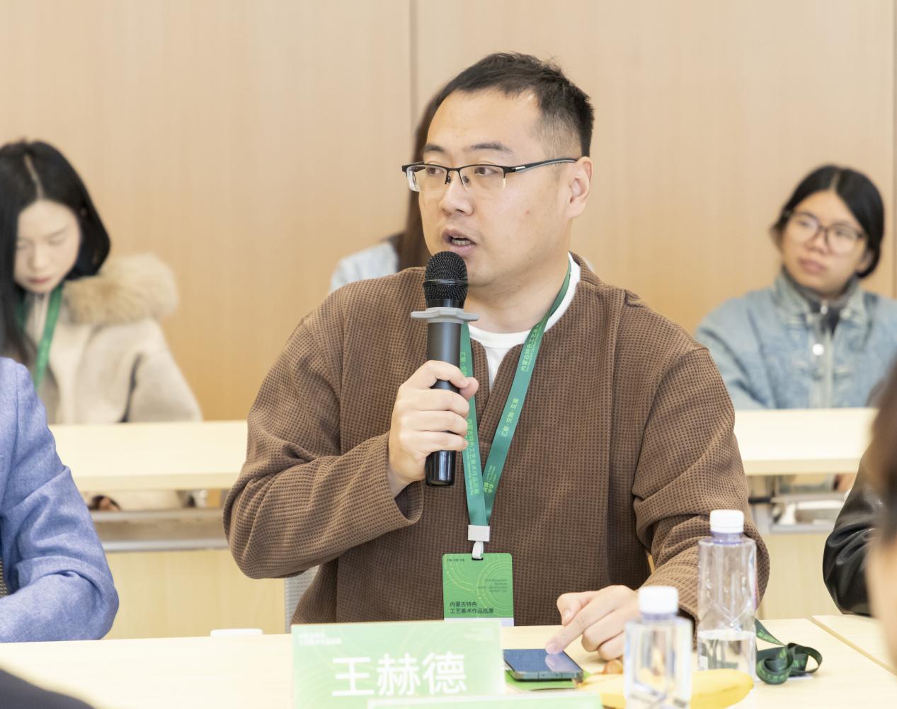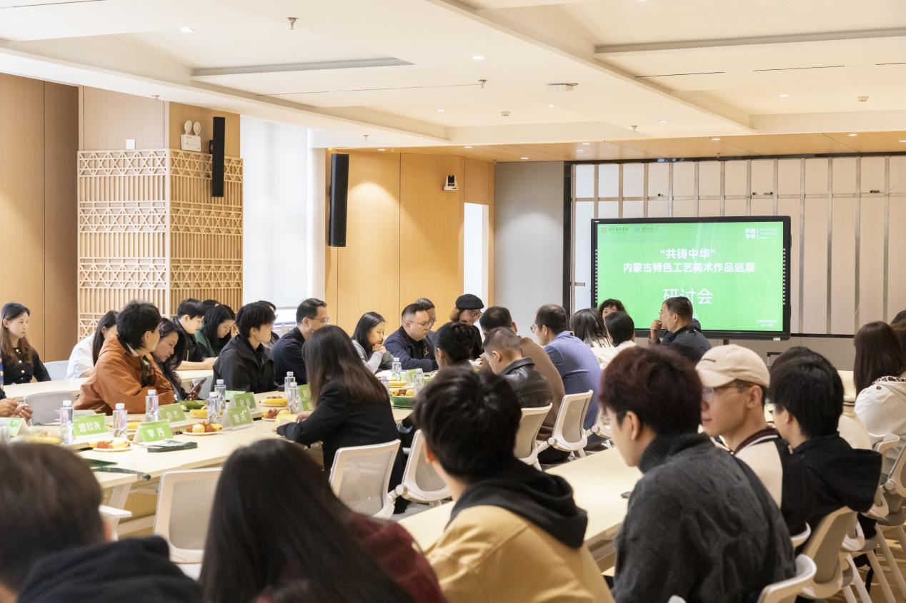 彭波、杨江波、向杰、沐晓熔、孙鹤瑜、刘皓、田甜、吴庆畅等与会专家学者与学生,在自由发言环节围绕“共铸中华——内蒙古特色工艺美术作品巡展”展开深入讨论,聚焦教育体系构建、青年人才培养与文化传播路径等关键议题,提出一系列具有建设性的观点。整场交流充分体现了艺术实践与学术研究在当代语境中的深度融合与双向滋养。
